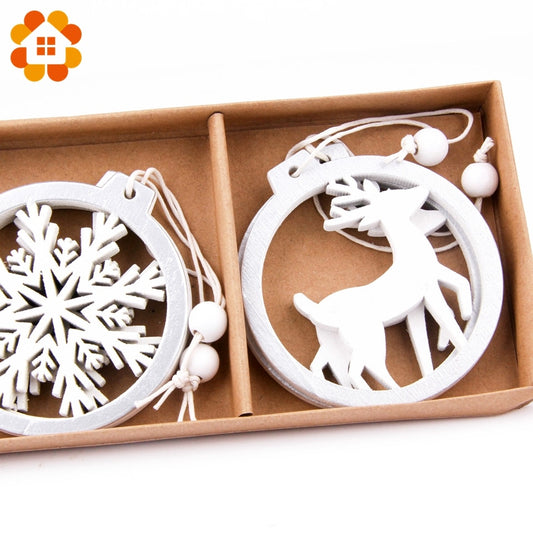 Wooden Christmas Pendants Decorations DIY Silver White Deer Snowflake